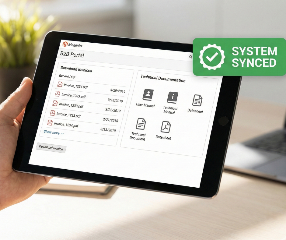 Enable Magento’s native Company Credit features. Configure credit limits, allow for Purchase Orders (POs) at checkout, and ensure the finance team can easily view and download invoices for accounting reconciliation.